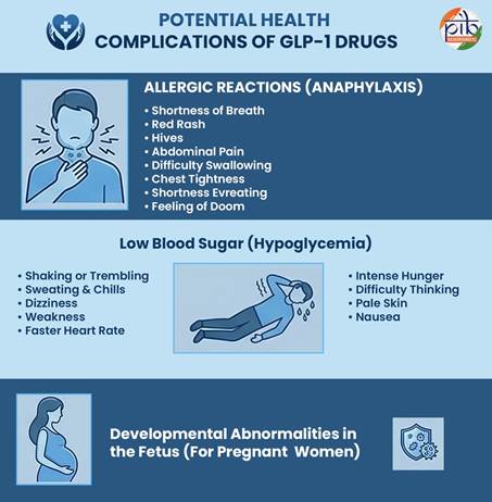 Additional complications highlighted by the government include allergic reactions, hypoglycaemia, and potential developmental risks during pregnancy. The advisory also notes physical changes such as rapid facial fat loss, often referred to in cosmetic discussions around these drugs.